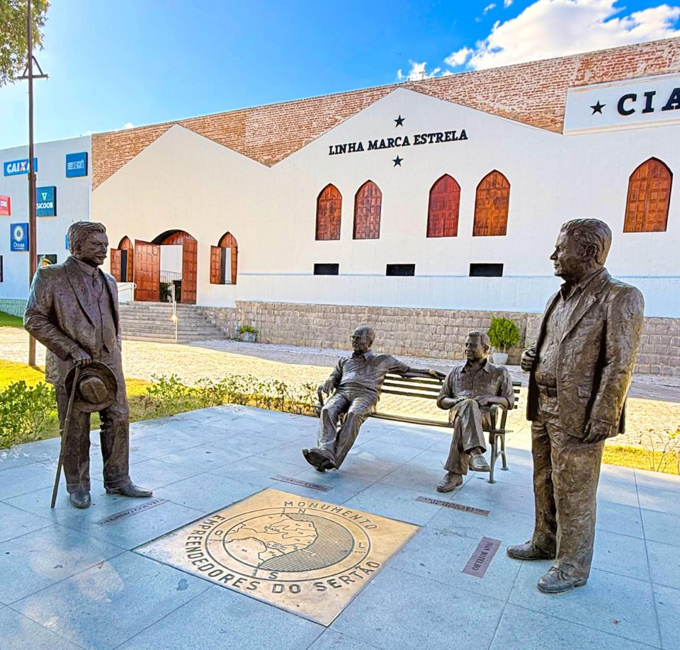 E para honrar essa trajetória, o shopping abriga a Praça das Esculturas, com monumentos em bronze eternizando esses quatro gigantes do desenvolvimento regional.